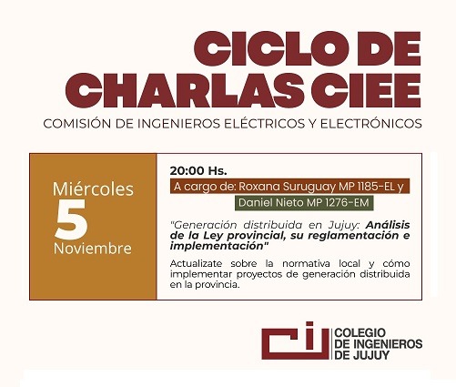 CICLO DE CHARLAS CIEE Fecha: 05/11/2025 Hora: Todo el día Calendario: COLEGIO DE INGENIEROS https://docs.google.com/forms/d/e/1FAIpQLScYa7fu8F0ItDKrISB6hDle2w-CcNxMyrpRV13LEmdFlCOeZg/viewform