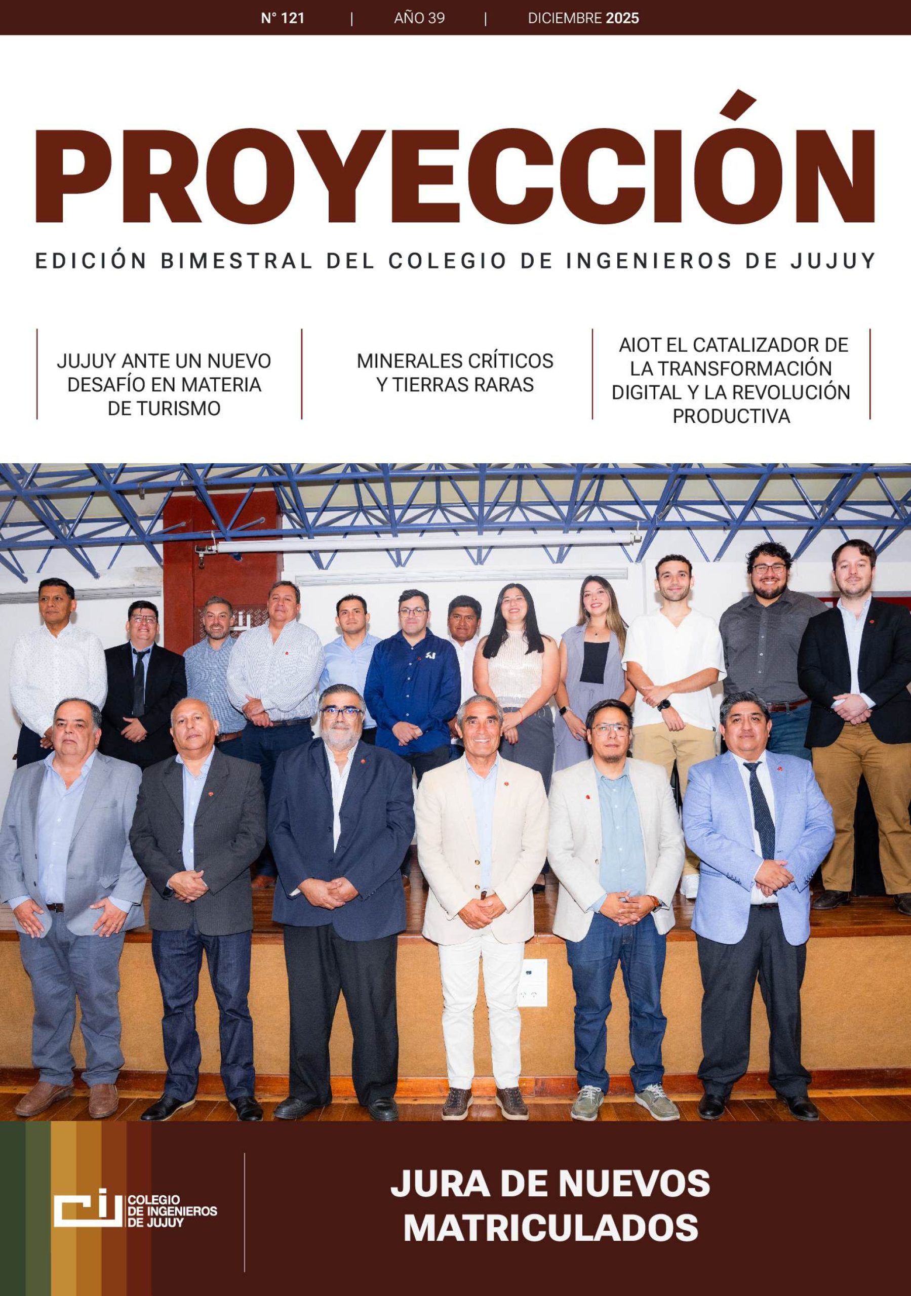 Te invitamos a leer la Edición N° 121 de la Revista Proyección del Colegio de Ingenieros de Jujuy, correspondiente al mes de Diciembre del 2025.