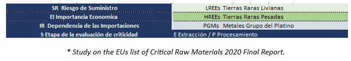 Se aprecia para el caso de las Tierras Raras (REEs: Rare Earths Elements) el alto interés económico (EI) para su sector industrial de bienes y servicios y la enorme dependencia (IR) de la República Popular de China para su abastecimiento tanto en materias primas extraídas, así como procesadas ya que importa casi el 100 % de su consumo. Existe una dependencia similar de la Comunidad Europea en los metales del grupo del platino respecto de Sudáfrica.