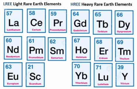 Los elementos de Tierras Raras (REE ) son un grupo de 17 elementos, que comprende al escandio (Sc), itrio (Y) y los 15 lantánidos (elementos 57-71), según la definición de la Unión Internacional de Química Pura y Aplicada (IUPAC, 2005)
