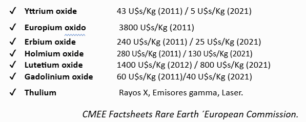 Terbyum Oxide 2500 U$s/Kg (2011) / 1300 U$s/Kg (2021)