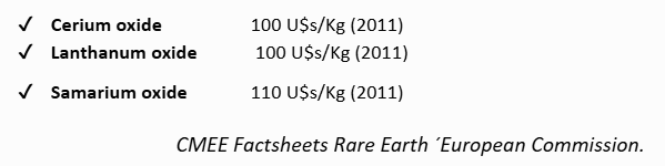 Neodymiun Oxide 250 U$s/Kg (2011) / 100 U$s/Kg (2021)
